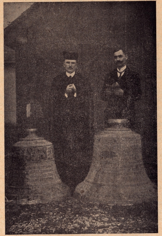 A régi harangok búcsúztatása. Gaál István segédlelkész és Pap Aladár kántor