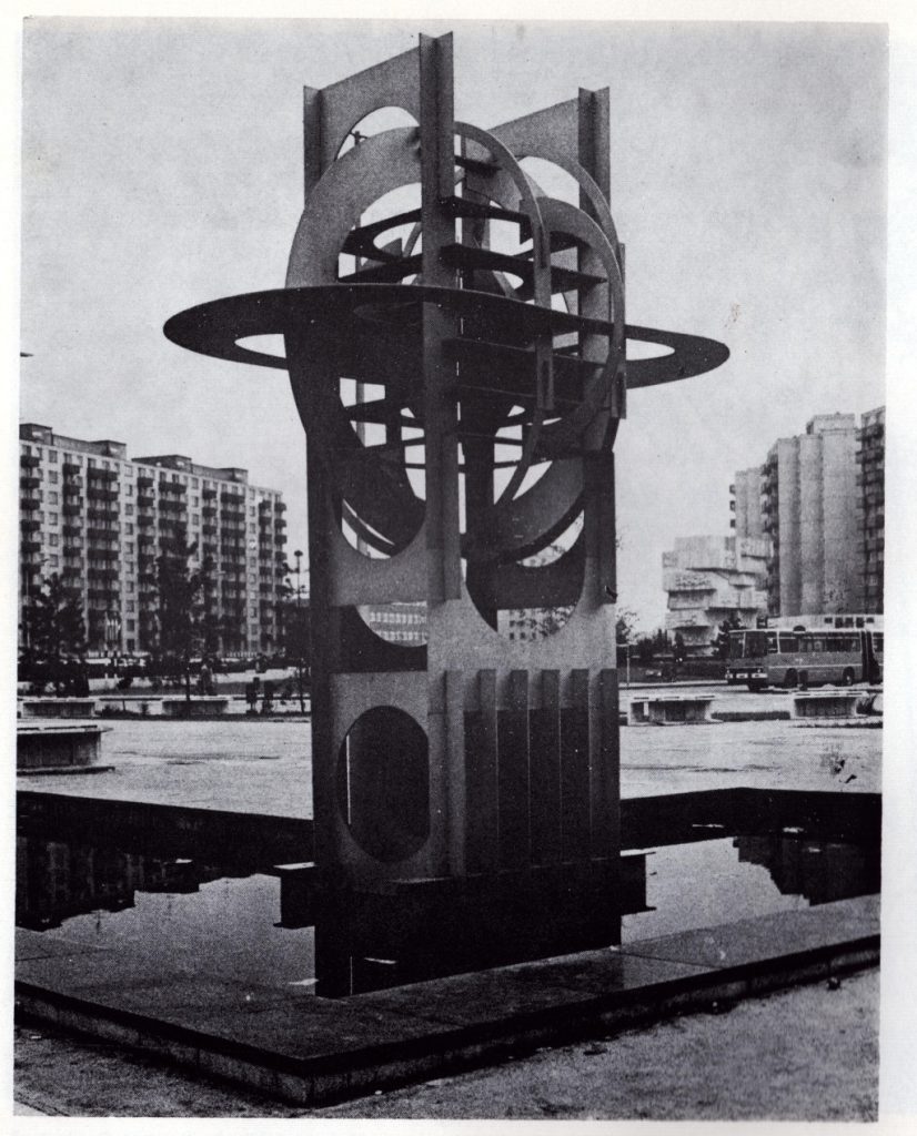A díszkutat a modern fém térplasztikával a szolnoki vasútállomás épületével egy időben adták át 1975-ben a Jubileum téren.