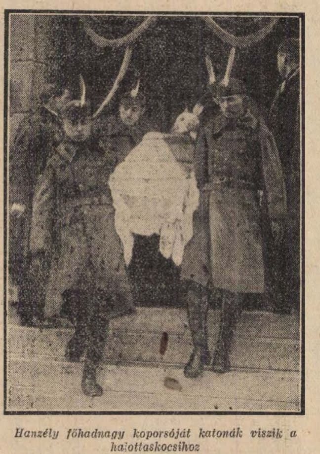 Hanzéliy Pált, aki postumus megkapta az ezüst Signum Laudis elismerést Budapesten, a Farkasréti temetőben helyezték örök nyugalomra katonai tiszteletadással. Horthy Miklós kormányzót képviseli a temetésen. Horthy Miklós kormányzó hatalmas fenyőgallyakból készített feketeszalagos koszorút küldött a hős főhadnagy ravatalára.