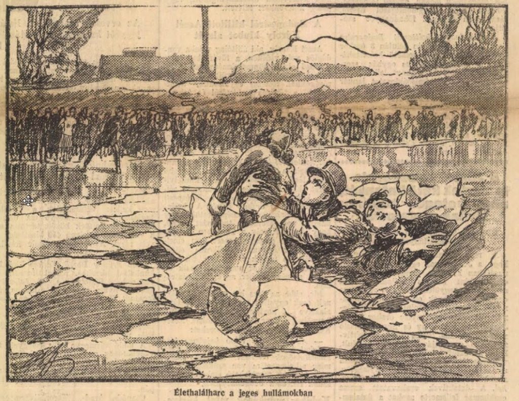 Az életmentő főhadnagy haláltusája a szolnoki korcsolyapálya jegén. Friss Újság, 1927.01.11.