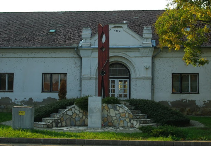 Az emlékművet 2005-ben az egyesített helység várossá nyilvánítása alkalmából avattak fel. A várossá avatás dátumát a szobor talapzata előtt álló kisebb kőoszlop őrzi, amelyen a település rendszerváltás utáni címere is látható: álló háromszögű pajzs vágott felső mezejében kiterjesztett szárnyú, fejével jobbra fordult sas, csőrében aranykoszorú; az alsó mezőben két, kifelé ívelt helyzetű ezüst csuka.