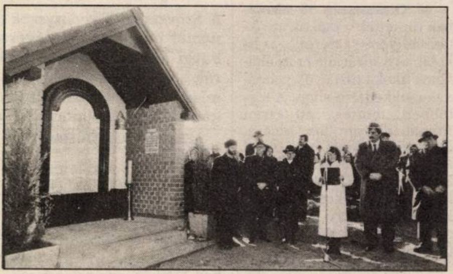 A Zsidó áldozatok emlékművének ünnepélyes avatására 1993. december 12-én, advent harmadik vasárnapján került sor, melyen részt vett dr. Szabad György, a Magyar Köztársaság Országgyűlésének elnöke, Raj Tamás főrabbi és dr. Kis Zoltán országgyűlési képviselő. Dr. Szabad György ünnepi beszédét követően Markovics Zsolt rabbi emlékező beszéde után héber nyelven mondta el a gyászolók imáját.