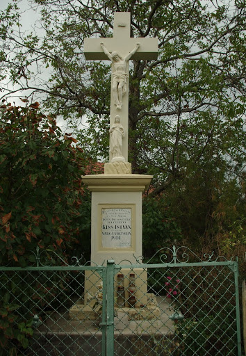 1914-ben állítatta Kiss Ferenc és neje Varga Viktória a háztelken álló feszületet a 32. sz. út mentén. A kőkereszt Baly Gy. jászberényi kőfaragó munkája.