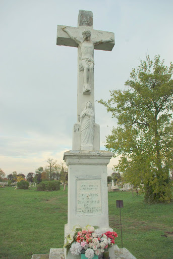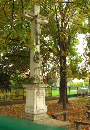 A Szent István út és a Jász út találkozásánál, a temető sarkában álló fehérre meszelt kőkeresztet, a talapzatán találhazó márványtábla tanúsága szerint, 1934-ben álltotatta Gecse János és Bencsik Apolló, majd 1954-ben Sinka Ferenc és felesége Gecse Erzsébet újítatta fel a feszületet.