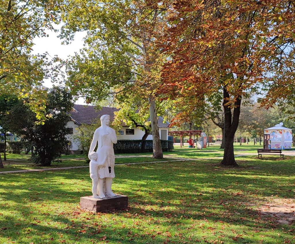 A bereki fürdő parkjában számos köztéri alkotás található. Az egyik legrégebbi Somogyi Árpád szobrászművész Anya gyermekével című alkotása, amely több példányban is fellelhető a megye (pl. Martfű) és az ország más településein is.