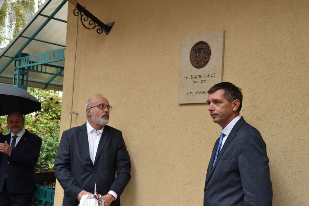 Molnár János polgármester és dr. Hajdu András, az orvos fia együtt leplezték le Győrfi Lajos alkotását, melyet megkoszorúztak Berekfürdő testvértelepüléseinek képviselői, a falu lakosai pedig egy-egy szál virággal tisztelegtek szeretett orvosuk emléke előtt.