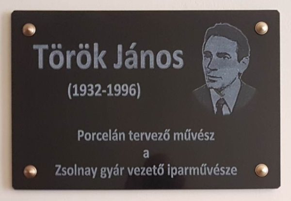 Török János iparművész emléke előtt tisztelegve avattak emléktáblát a mezőtúri városházán a Zsolnay-gyár porcelántervezőjéről elnevezett „Török terem” mellett 2022. május 7-én. Fotó: Vincze János Farkas Forrás: Kakuk Móni. Emléktáblákat avattak. Mezőtúr és Vidéke 2022.06.03.